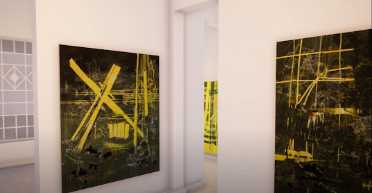 Los verdes o amarillos de fondo son arrasados por una violencia necesaria para correr lo falso, Kohon lo sabe. Las sillas, las mesas, las plantillas, son un sueño de una pintura en convulsión, un aturdimiento, una sustitución de lo visible por lo audible.